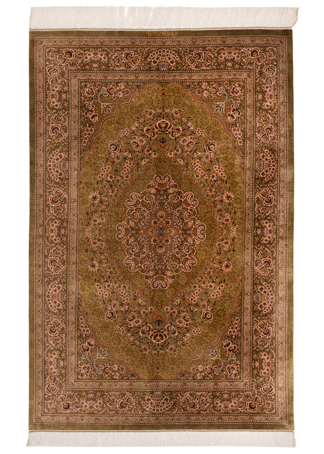 Alfombra persa de seda pura Qom | 203 x 135 cm