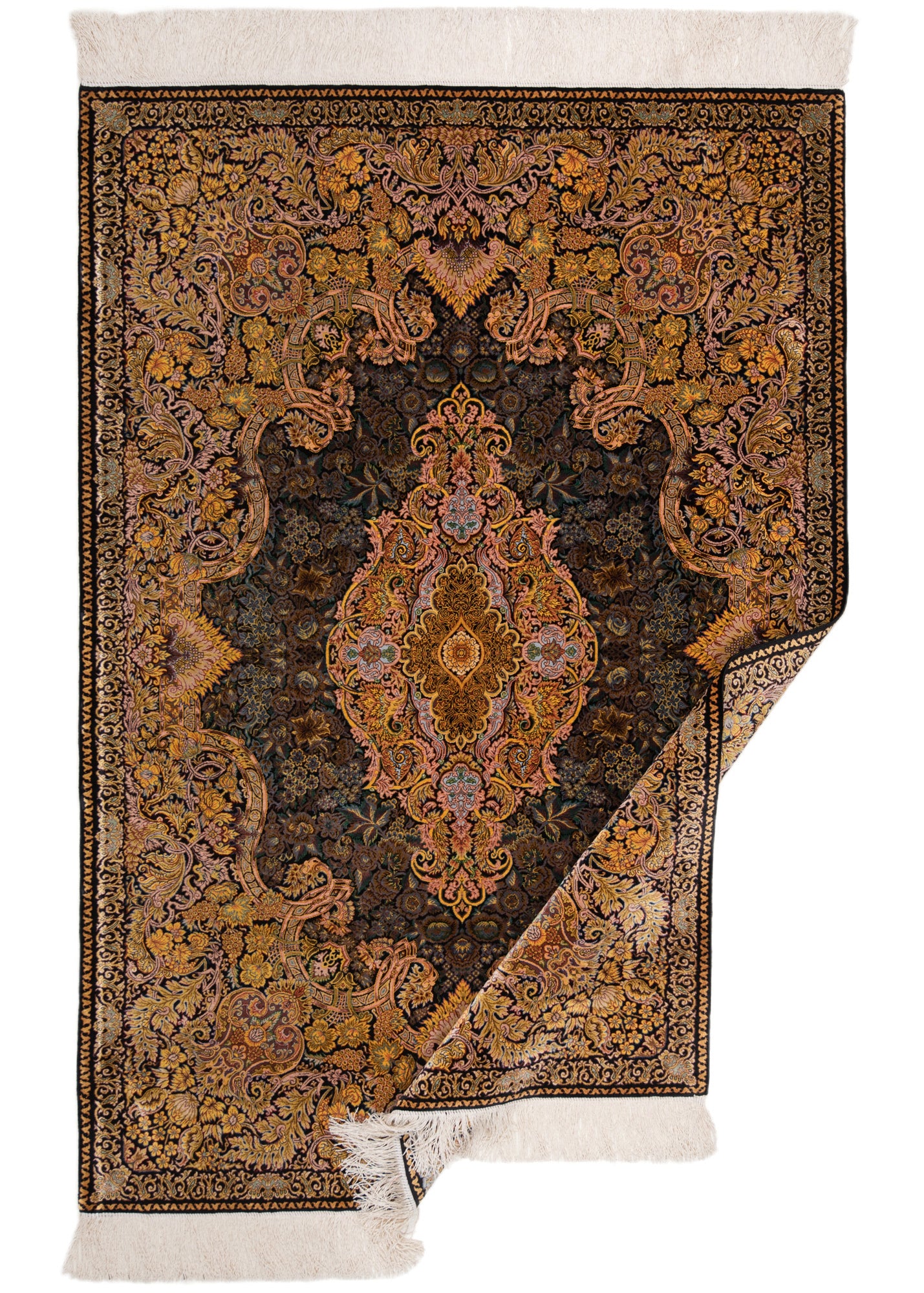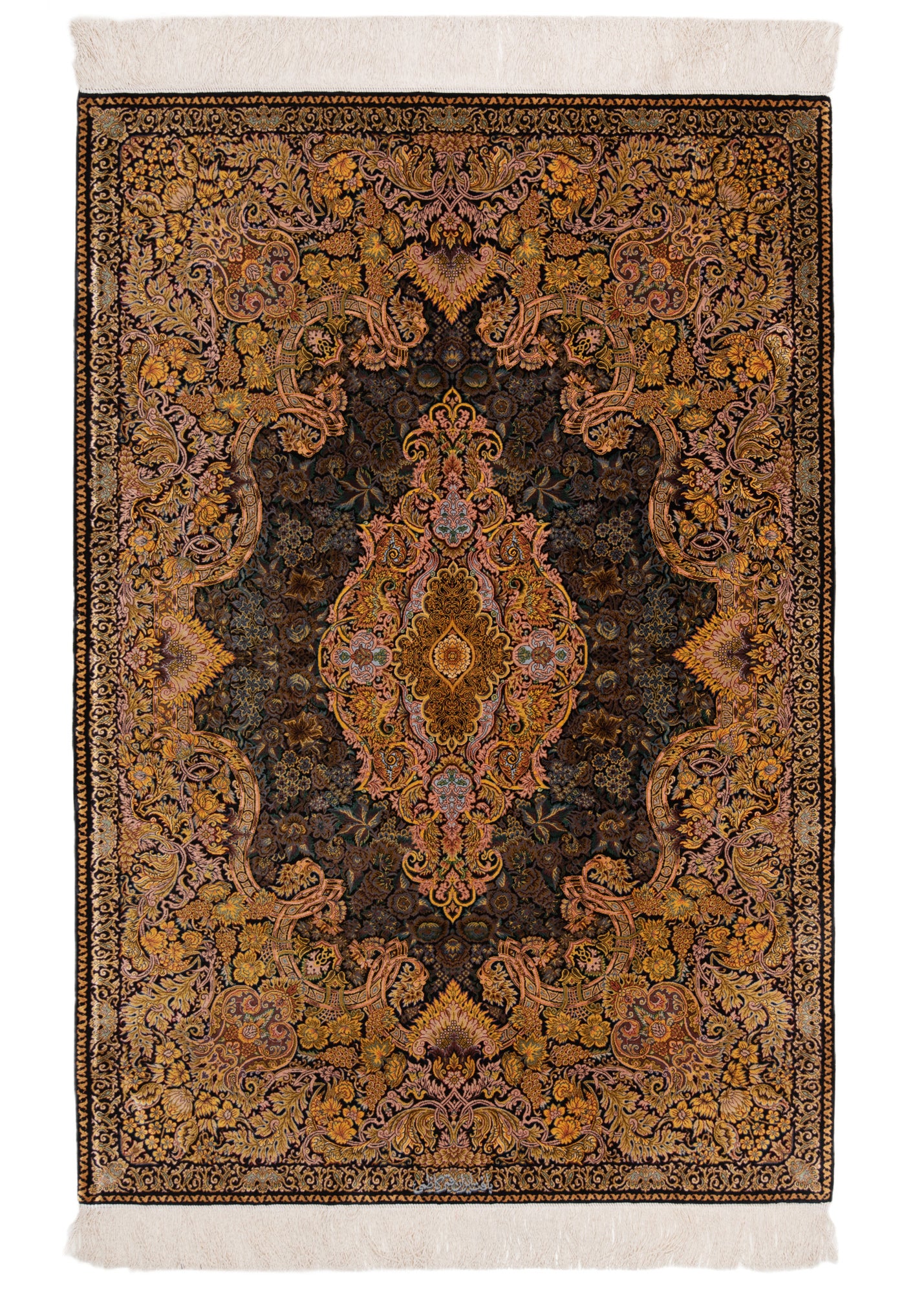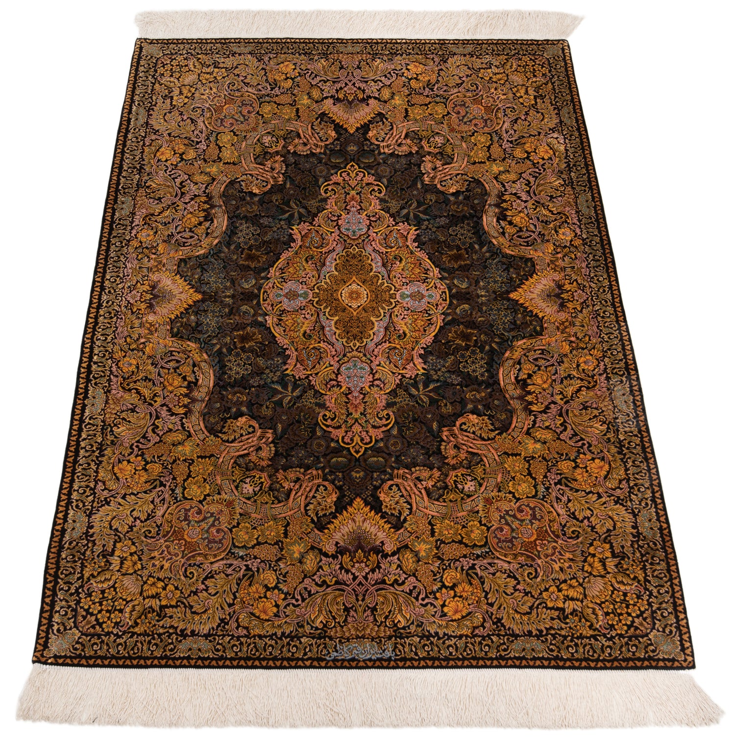Alfombra persa de seda pura Qom | 150 x 103 cm